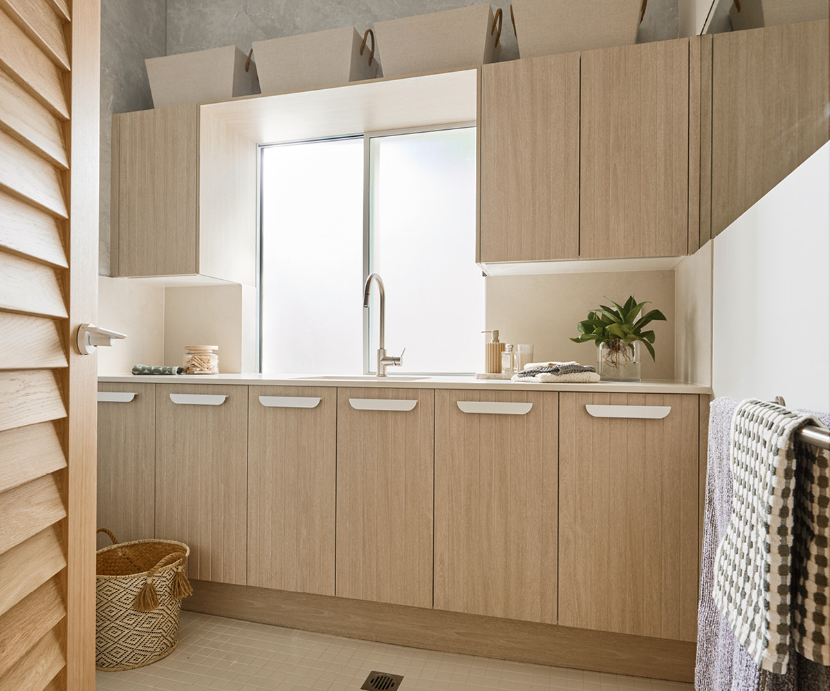 Cabinetry: Avalon Coastal Oak Woodmatt (kitchen, laundry, guest bedroom & home office)