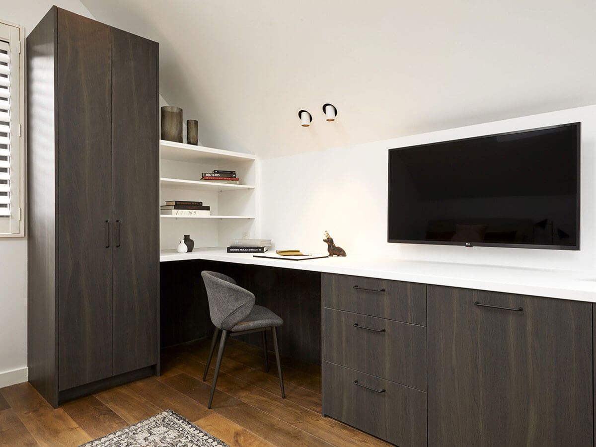 Most of our joinery allows for your Kinsman wardrobe design to flow effortlessly into a study nook or home office space.