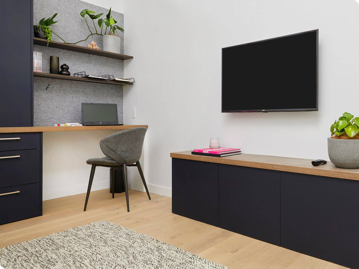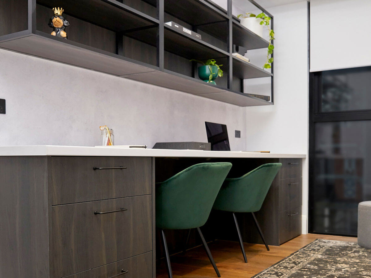 It all depends on the space you’re working with. Whether you’re planning to have a dedicated room for an office, study zone or integrated study nook into your Kinsman Wardrobe or Kitchen, our experienced designers will work with you to create the perfect Home Office that meets all your needs. You can book an in-home appointment or one of our virtual consults where your designer will video-call you to help you get your Home Office journey started!