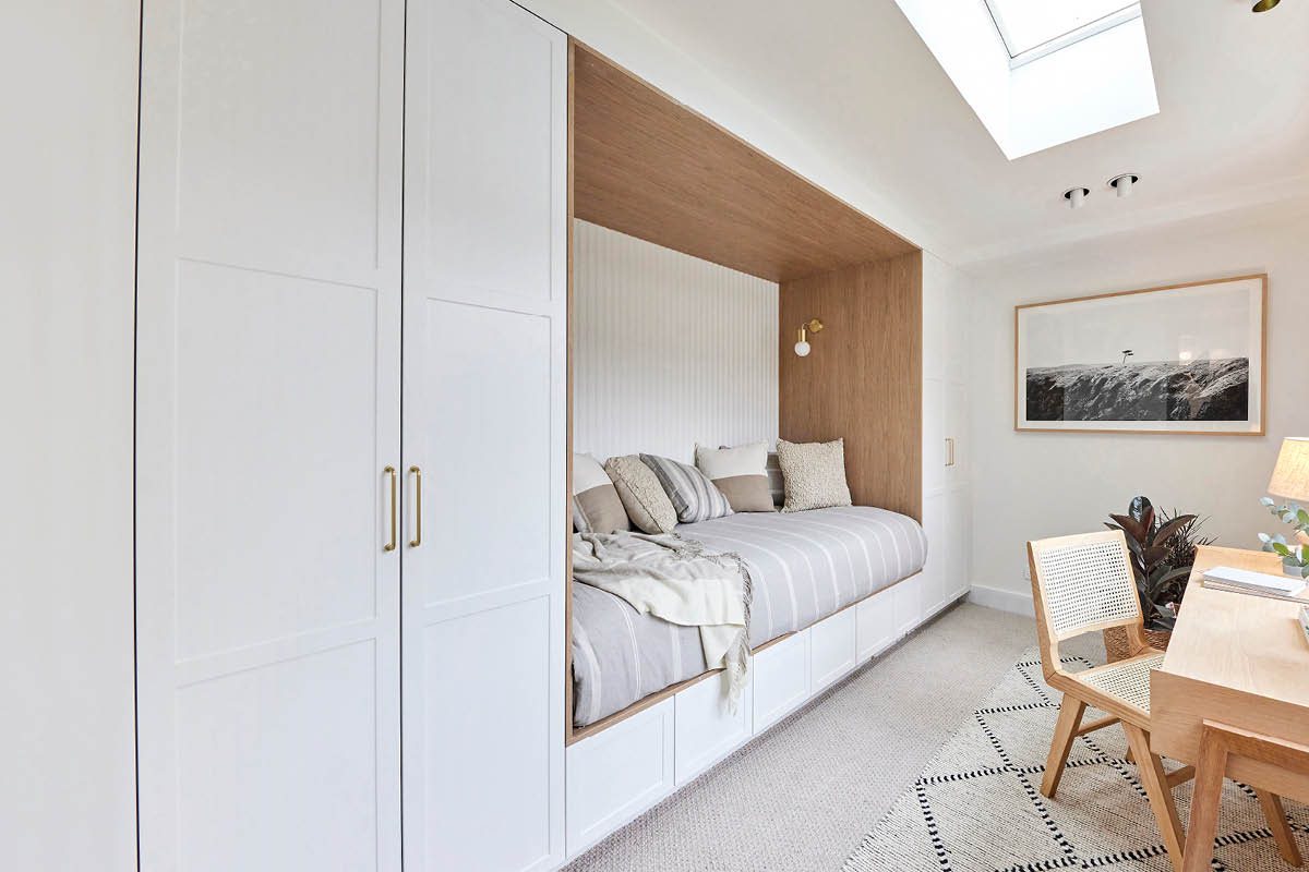 Ronnie and Georgia selected White Matt Montauk profile doors for their first guest bedroom robe to create a classic look with a modern edge. Montauk is new to the Kinsman range, featuring a shaker-style profile with a 40mm rail surround, finished in a luxurious matte finish.